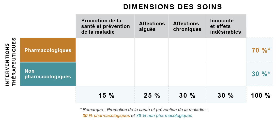 Il s’agit d’interventions thérapeutiques qui ne requièrent pas l’usage de médicaments et qui sont bénéfiques pour la santé et le bien-être du patient (p. ex., conseil, exercice, attelles).